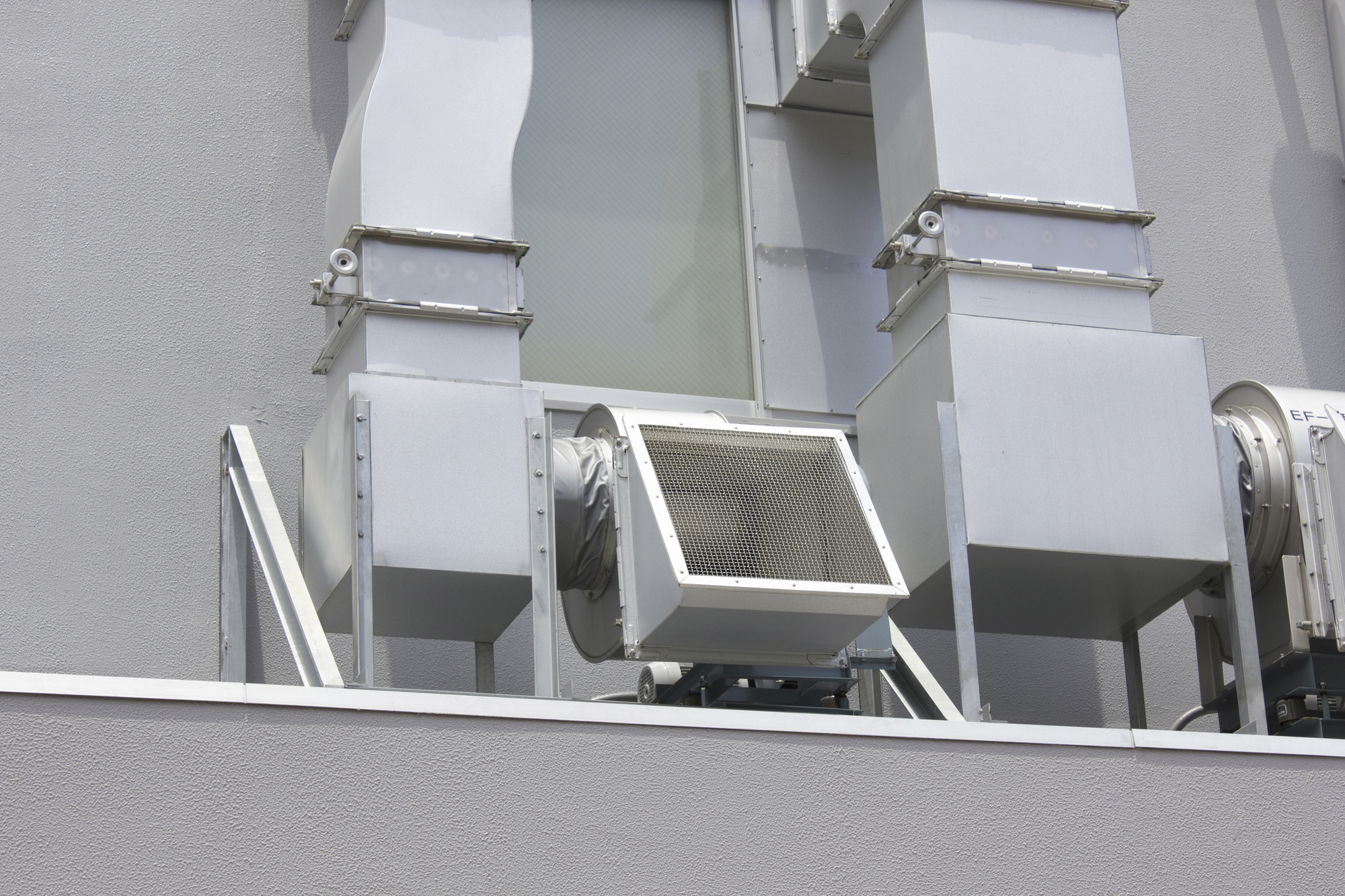排煙ダクトは、火災時に発生する煙を屋外へ排出するための排煙設備です。火災警報機が熱や煙を感知すると、排煙用ファンが作動し、建物内の煙を速やかに外部へ排出します。